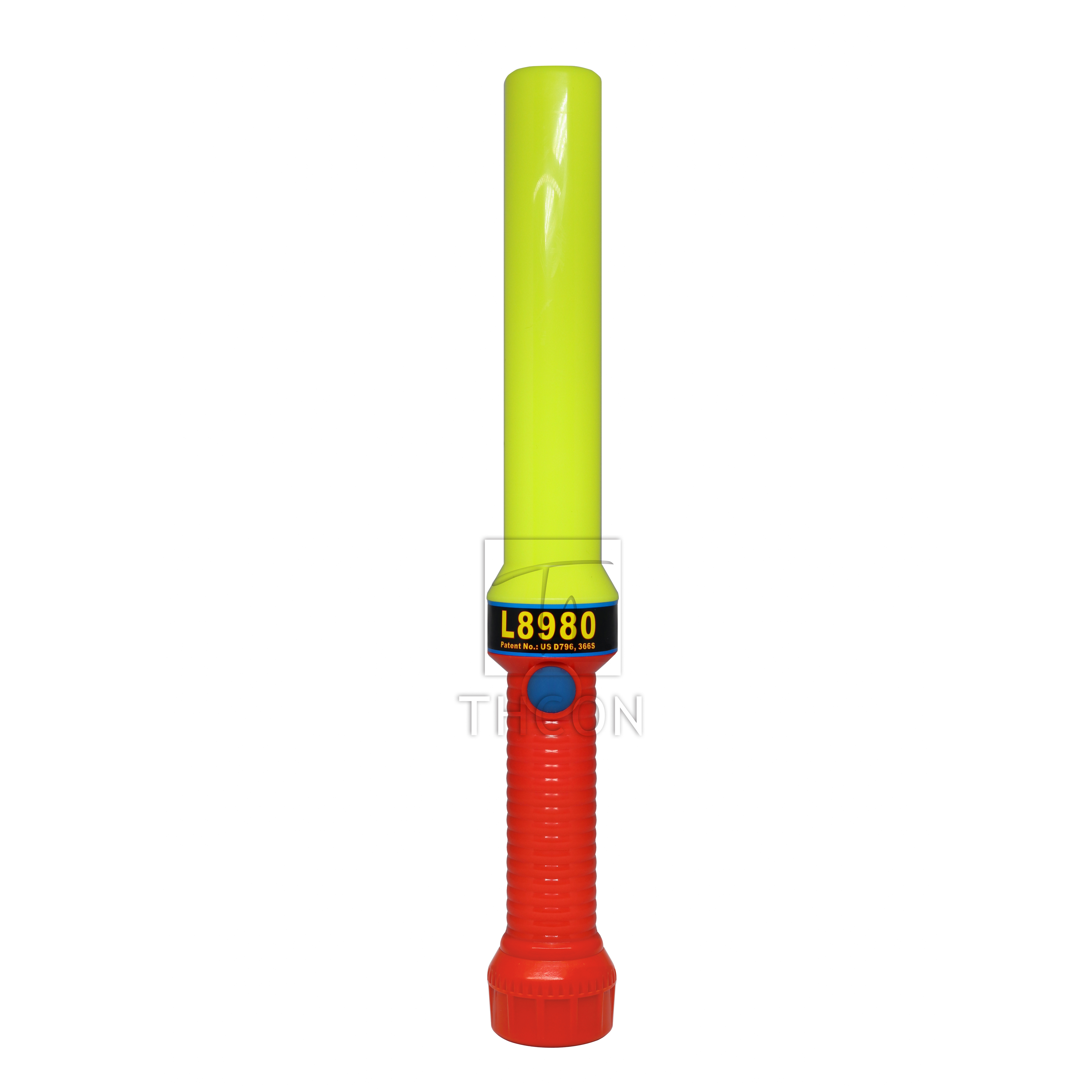 L9030高亮度LED灯珠,夜晚可视距离超过1千米。防滑橡胶手柄和底部挂绳设计,方便携带,防水防撞击,可以应用于交通管制,拥挤控制等。
